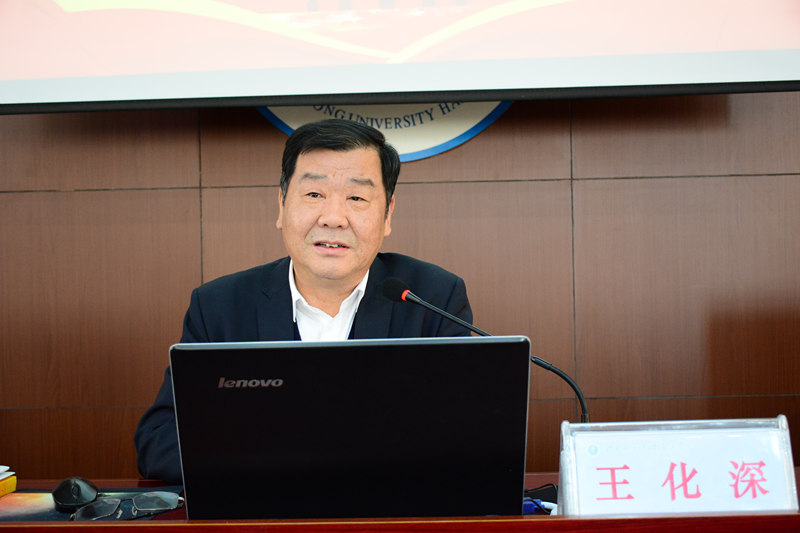 11月29日下午,“学习贯彻党的十九大精神宣讲会”在米乐官网行政楼A512会议室成功召开。院长、党委书记王化深教授作了题为《学习贯彻党的十九大精神,加快推进高水平应用型大学建设》的宣讲报告。副院长、副书记张长铎,副院长徐爱国,院长助理任福义出席会议。全体中层干部、全体教师党员参加了宣讲会。宣讲会由副院长、副书记张长铎主持。