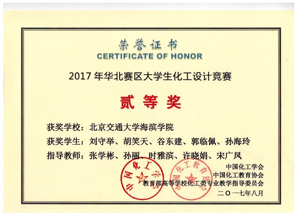 2017年8月3日-5日,由中国化工学会、中国化工教育协会、教育部高等学校化学工程与工艺专业教育指导分委员会联合主办,北京化工大学承办的2017年“东方仿真杯”第十一届全国大学生化工设计竞赛华北赛区竞赛在北京化工大学隆重举行。由米乐官网化学工程系的张学彬、孙丽、时雅滨、许晓娟、宋广凤老师指导的团队(刘守举、胡笑天、谷东建、郭临佩、孙海玲)在华北赛区取得赛区二等奖,经不懈努力最终荣获全国化工设计大赛二等奖。与此同时,我院参加化工设计大赛的另外两支由贾婷、焦帅为队长带领的队伍同样获得了优异的成绩。