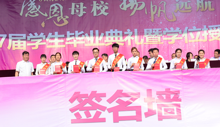 毕业生代表向母校赠送礼物后典礼在全场热烈的掌声中圆满落幕