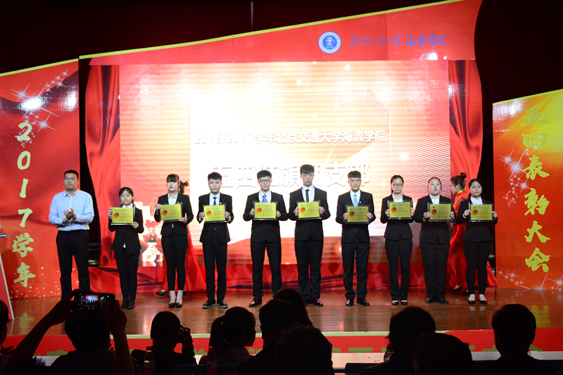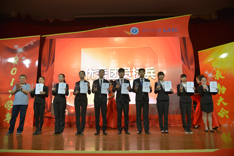 学生处处长黄璐璐对2016至2017学年米乐官网团委开展的各项工作进行了全面总结,并宣读对先进集体和先进个人的五四表彰决定,表彰的有优秀团干部,优秀团员标兵,优秀共青团员,五四优秀团支部,优秀团务工作者,五四红旗团委,黄骅市优秀共青团员,海滨五四奖章等。