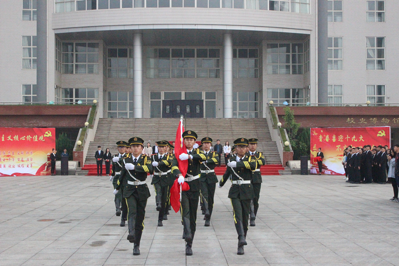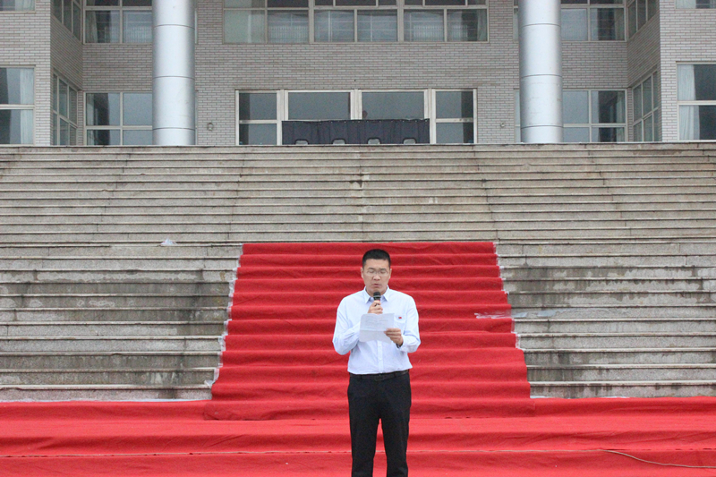 大会首先进行升国旗仪式,国旗护卫队以昂扬的精神,迈着矫健的步伐缓缓出旗,嘹亮的国歌响起,在全体师生的注目下,五星红旗冉冉升起。升旗仪式结束后由学生代表进行朗诵和宣读校园文明倡议书,并带领全体人员向党旗庄严宣誓,随后王院长为预备党员佩戴党员徽章。