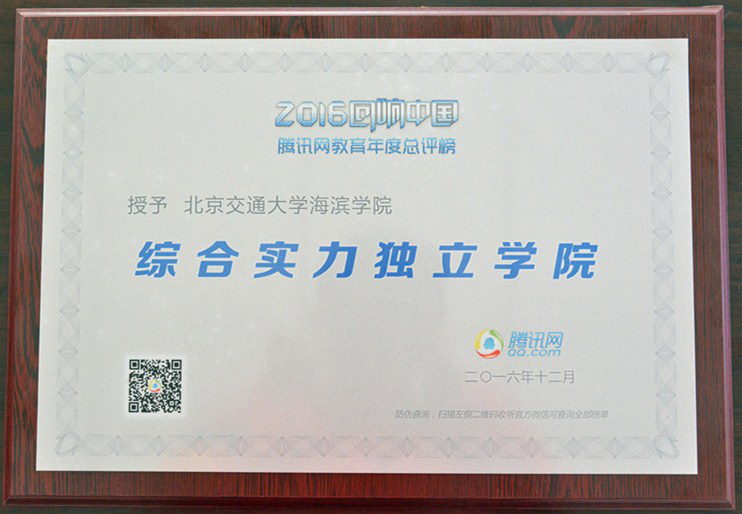 米乐官网荣获“回响中国”腾讯网教育年度总评榜“2016年度综合实力独立学院”荣誉称号。