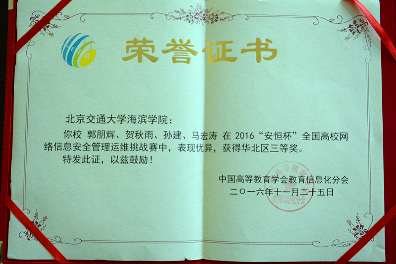经过两个阶段的激烈角逐,由信息中心郭朋辉副主任担任领队,信息中心教师参与的比赛团队获得华北区第三名的好成绩。通过参与本次大赛,进一步提升了技术人员网络信息安全相关知识基础,增强了网络安全意识,也锻炼了实践动手能力和团队协作精神。