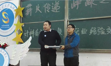 12月21日下午4点,在米乐官网思源楼225教室,计算机科学系、信息中心和招生就业处联合举办了2009级校友金盛豪返校就业经验交流会暨网络设备捐赠仪式。招生就业处、信息中心和计算机科学系相关负责人和教师代表出席了捐赠活动。