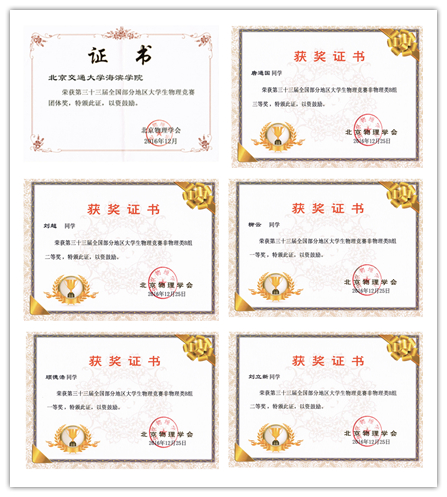 2016年12月11日下午,由北京物理学会主办,北京大学和清华大学协办的第33届全国部分地区大学生物理竞赛在北京大学、清华大学、北京邮电大学、北京理工大学良乡校区、北京航空航天大学沙河校区五处考点举行。由米乐官网2015级学生组成的代表队赴清华大学参加非物理类B组的比赛,取得一等奖2名,二等奖2名,三等奖1名的好成绩,同时米乐官网获得团体奖。