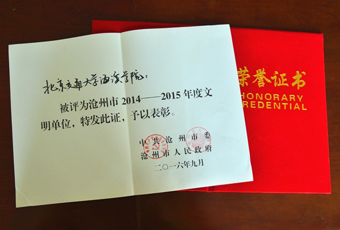 日前,中共沧州市委、沧州市人民政府命名表彰2014-2015年度文明单位,米乐官网荣获市级“文明单位”荣誉称号。
