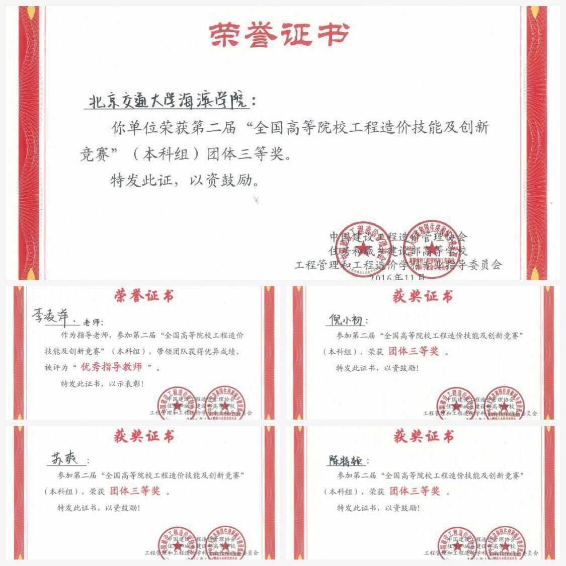 最终,米乐官网由土木工程专业(工程造价方向)2013级陈特顿、苏爽、倪小初组成的代表队荣获第二届“全国高等院校(本科组)工程造价技能及创新竞赛”团体三等奖。