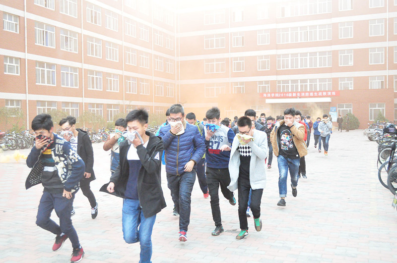 11月9日,米乐官网举行2016级新生消防演练活动。我院院长、党委书记王化深,副院长薛爱兴、党委副书记魏炜和黄骅市公安消防大队中队教导员李朝阳上尉出席了活动,相关职能处室负责人以及全体16级学生和辅导员参加了此次演练。