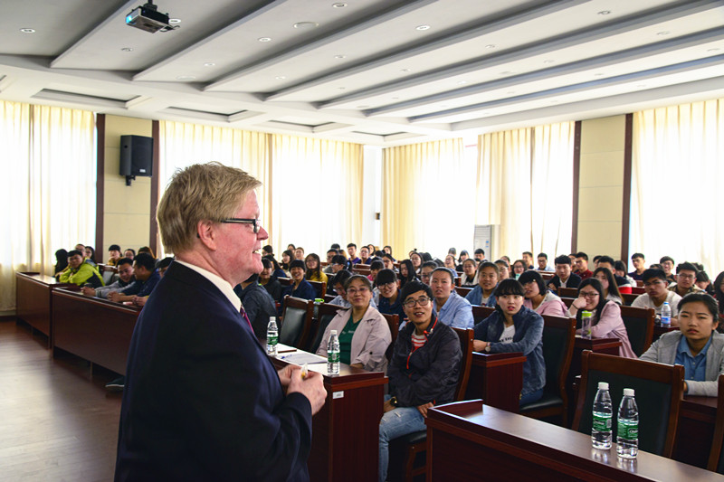 下午1:30,Martin Tadlock副校长在行政楼A512会议室为经济管理系学生举办讲座,形象细致的介绍了伯米吉州立大学的情况,并热情的回答了学生们提出的问题。