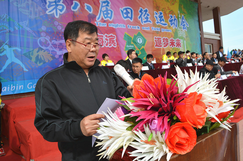黄骅市副市长郑增强致辞,他首先代表中共黄骅市委、黄骅市人民政府对北京交通大学海滨学院第八届田径运动会的隆重开幕表示热烈的祝贺,并肯定了我院在体育基础设施建设和各类体育比赛中取得的优异成绩,希望海滨学院的全体师生员工能够热爱体育运动,养成健康的生活习惯,以更加饱满的热情投入到紧张的学习、工作和生活中去,在充满生机与活力的渤海之滨谱写更加精彩的人生篇章,为黄骅市社会体育文化活动的繁荣发展做出更大贡献。