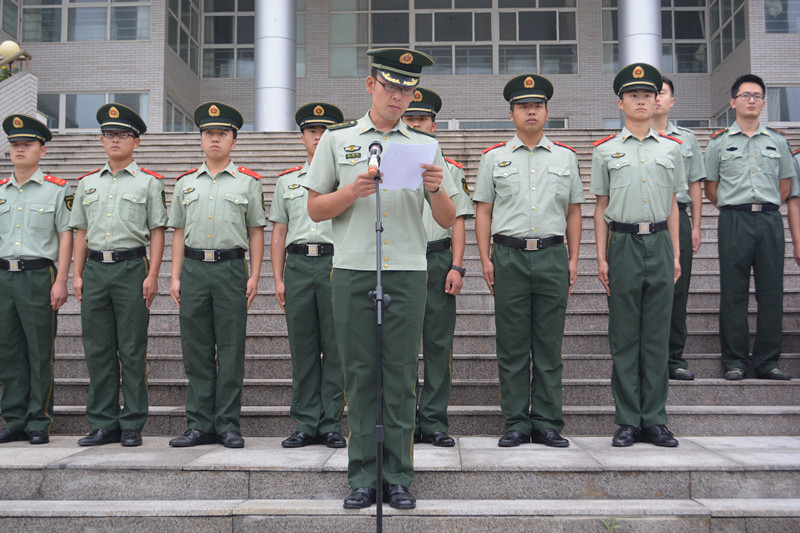 表演结束后,张晨宇上尉发言表扬小教官们能够以边检站武警战士为榜样,严格要求,刻苦训练,不畏风吹雨打、烈日暴晒,对每一项训练内容都认真领会,反复训练,体现出同学们吃苦耐劳,团结一致,积极向上的优秀品质,希望同学们要把这份品质传承下去。