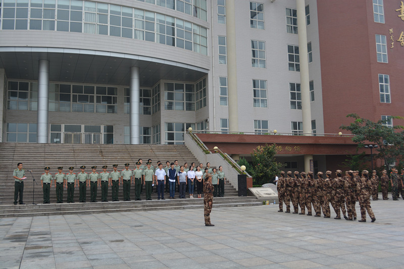 2015年9月5日上午8:00,我院14级军训小教官结训典礼在图书馆前成功举行。我院党委副书记孙文博、驻渤海新区黄骅边防检查站张晨宇上尉、各系团委书记、新生辅导员以及9名边检站武警教官参加本次结训典礼。典礼由学生处王庆松老师主持召开。