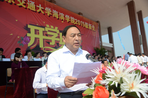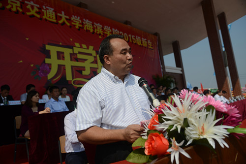 北京交通大学党委副书记高福廷代表北京交通大学致辞。他表示,北京交通大学将一如既往地支持学院办学,全面提高学院的人才培养质量。他希望我院2015级新同学谨记“进德修业,知行合一”的校训,学会自立,自律,自强。