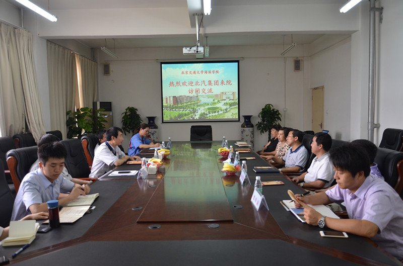 6月17日下午,北京汽车制造有限公司总裁张伟一行4人来院访问交流。北京交通大学党委副书记、我院院长高福廷、执行院长王大勇、副院长徐爱国、副院长张乐乐以及相关单位负责人接待了各位来宾。