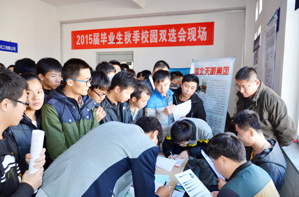 11月17日,我院2015届毕业生秋季校园双选会在二期教学楼举行。本次双选会共吸引京津冀地区的160余家用人单位来院招聘,提供就业岗位2000余个,涵盖2015届全部专业。上午10:00,双选会正式开始,我院2015届毕业生整齐有序步入会场,向心仪的用人单位投递简历,与用人单位进行面对面交流。