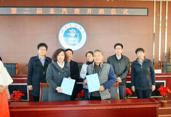 开班仪式上,陶德权副总裁与张乐乐副院长分别在第二届北汽班补充协议上签字。