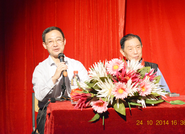 10月24日下午4:00,著名作曲家、音乐理论家、音乐教育家,中国音乐家协会创作委员会副主任,国家一级作曲家龚耀年教授音乐讲座在我院实验楼报告厅举行。我院党委副书记孙文博、音乐学专业责任教授蔡海波、各相关单位负责人与我院2014级音乐学专业全体学生以及其他专业学生共同聆听讲座。讲座由蔡海波教授主持。