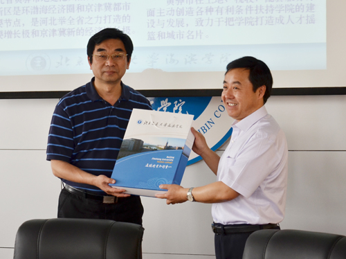 5月10日上午,北京信息科技大学党委副书记杨军带领基建处、新校区建设指挥部相关负责人一行7人访问我院。北京交通大学党委副书记、我院院长高福廷,我院执行院长王大勇、副院长薛爱兴、党委副书记孙文博以及黄骅华城房地产开发有限公司总经理张如珠、副总经理丁春国等领导接待了北京信息科技大学的客人。