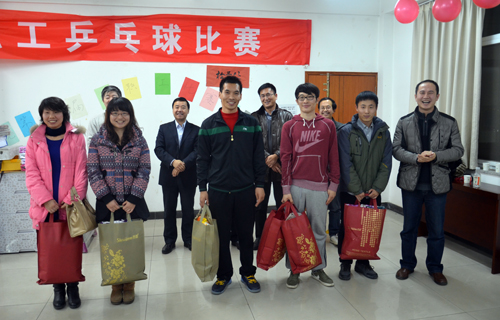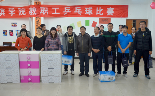 首先,工会副主席尹鸿峰宣布了第三届教职工乒乓球比赛结果:基础教学部大学体育教研室、保卫处、机械与电气工程系荣获男团比赛前三名;基础教学部大学物理教研室、大学数学教研室、大学体育教研室与大学英语教研室联合代表队荣获女团比赛前三名;祁中林、曹智、荆树杭、吴立军、彭一腾、马群、商全乐、时国松分获男单比赛前八名;黄璐璐、安玉冉、满鹤楠、王兰、刘雪华、李策、张晓芳、德新玲分获女单比赛前八名。接着,院领导分别为获奖团体和获奖个人颁发了丰厚的奖品。