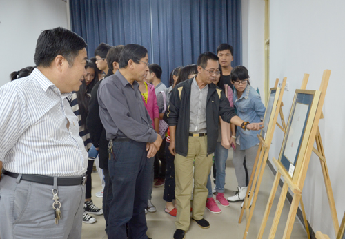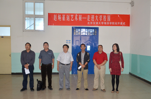 9月25日下午,由中国石油书法家协会和我院联合举办的赵飚篆刻艺术展在我院通方教学楼C-116艺术系展室开幕。北京交通大学党委副书记、我院院长高福廷,我院副书记兼副院长张长铎,中国石油书法家协会副秘书长、书法篆刻家赵飚,中国石油大港油田人才开发中心副主任班绍顺,大港油田实验中学德育主任刘庆红,大港油田车务中心科长李万胜、摄影家赵殿俊及我院各相关单位负责人出席开幕式,我院艺术系百余名师生参加开幕式,开幕式由高福廷院长主持。