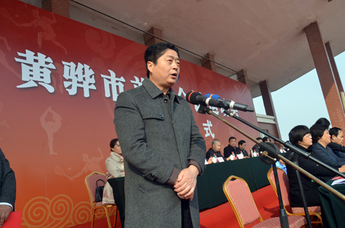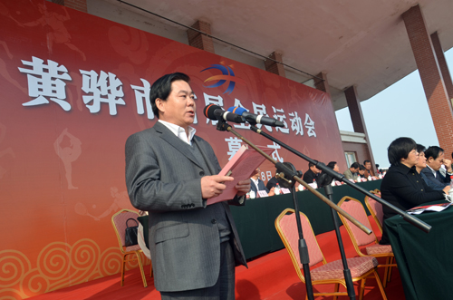 黄骅市委副书记董文昌致开幕词。他指出,黄骅市首届全民运动会的举办,不仅是我市体育发展史上的空前盛事,也是全市政治经济生活中的一大喜事,更是一次检阅“精气神”、聚集正能量的大会。他希望全市上下在更快、更高、更强的体育精神的激励下,进一步振奋精神、创新进取,向好的学、与强的比、跟快的赛,在城市建设、经济建设和城镇化建设“三大板块”中贡献力量,形成赶学比拼、群马拉车的生动局面,早日把黄骅建成靓丽、繁华、宜居、和谐的滨海新城。