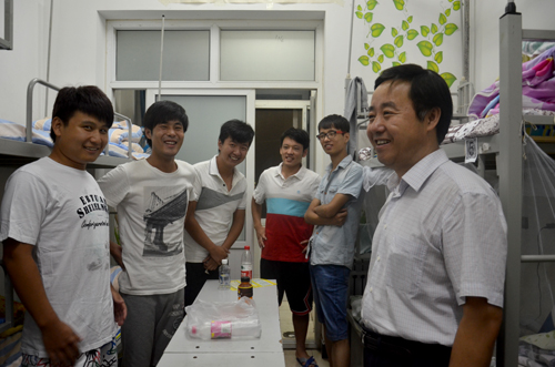 9月2日晚8点,我院执行院长王大勇、副院长兼党委副书记张长铎、副院长贾怀义、吴子成、徐维祥以及各相关单位负责人在2013级新生辅导员的陪同下,来到1号学生公寓,走访新生宿舍,慰问入学报到的2013级新同学。
