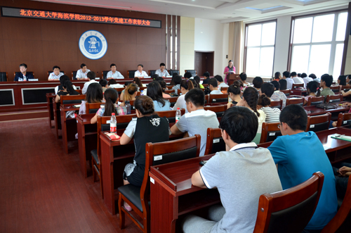7月13日下午4:00,我院在行政楼五楼会议室召开2012-2013学年党建工作表彰大会。北京交通大学党委副书记、我院院长高福廷,我院执行院长王大勇,副书记兼副院长张长铎,副院长吴子成、徐维祥以及各相关单位负责人、各党支部书记出席会议。我院全体教职工党员及学生党员参加会议。表彰大会由学生处处长孙文博主持。