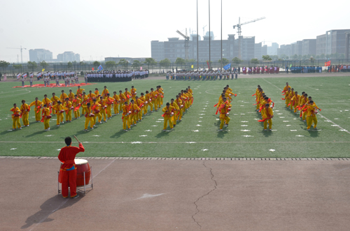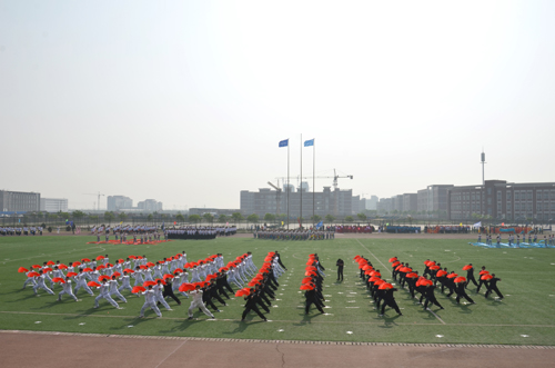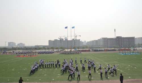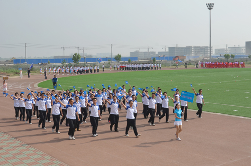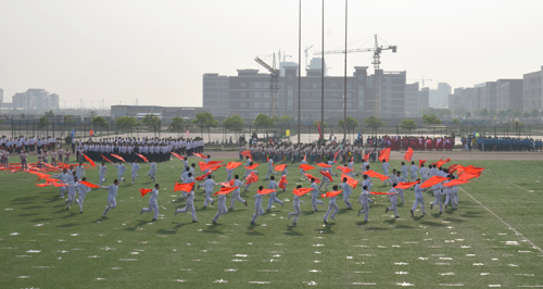 5月19日上午8:00,以“盛世中国,体育海滨”为主题的我院第五届运动会在学院体育场隆重开幕。出席开幕式的领导和嘉宾有:黄骅市政府副市长郑增强、市教育局局长康学树、市文广新局副局长范晓东;华城公司总经理张如珠;我院执行院长王大勇,副书记兼副院长张长铎,副院长吴子成、周俞波以及各职能处室负责人、各系部主任、专业负责人。开幕式由学生处处长孙文博主持。