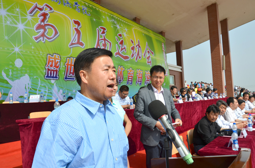 黄骅市政府副市长郑增强致辞,他代表中共黄骅市委、黄骅市政府向我院第五届运动会的隆重开幕表示热烈的祝贺,向我院万余名师生致以亲切的问候!郑增强副市长指出,海滨学院的运动会作为黄骅市体育文化活动的一次盛会,近年来蓬勃发展、成绩喜人、影响广泛。郑增强副市长希望各参赛代表队和运动员顽强拼搏、互助友爱、实现梦想、收获友谊,体验竞赛的魅力、诠释体育的精神,取得运动会成绩和精神文明建设的双丰收,为黄骅市体育工作的繁荣发展做出新的更大贡献。