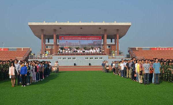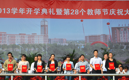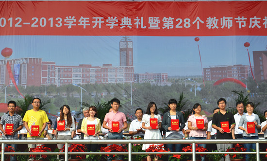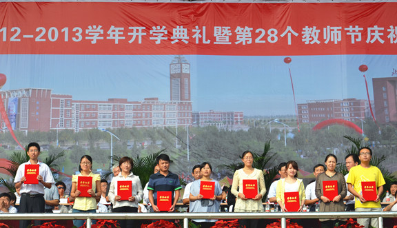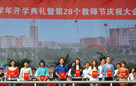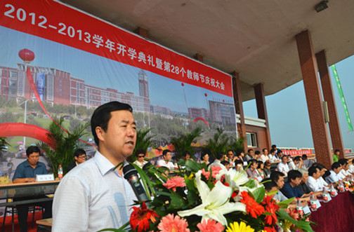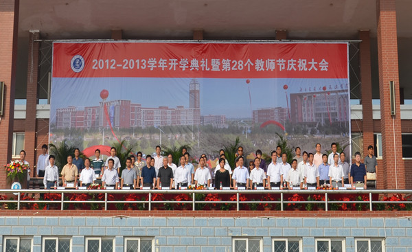 金秋九月,丹桂飘香。9月9日上午8:30,我院2012-2013学年开学典礼暨第28个教师节庆祝大会在学院操场隆重举行。北京交通大学党委副书记、我院院长高福廷,黄骅市委常委、副市长夏爱华,北京交通大学校长助理郑广天与各相关单位负责人以及投资方的代表等领导和嘉宾应邀出席大会并在主席台前排就座。我院全体院领导、各系部处室负责人、责任教授以及全体师生员工参加大会。大会由我院执行院长王大勇主持。