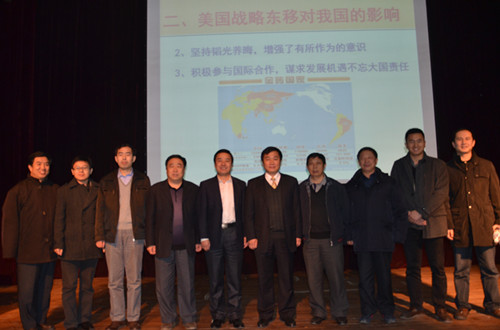 讲座中,颜教授指出目前国际局势不稳定因素依然存在,美国战略东移对世界格局变化影响深远,并从历史、当代及未来的角度深入分析了中美关系的历史进程和发展态势,使台下学生深刻认识到了美国战略东移对于世界以及中国发展的影响。