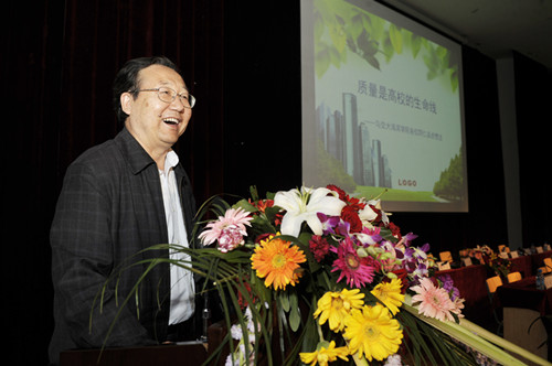 随后,专家咨询委员会委员宋守信教授作了题为《质量是高校的生命线》的精彩报告。宋教授结合毕业生面临的严峻的就业形势,发出高校应该如何改进教学质量的疑问,他认为应该把提高质量作为教育改革发展的核心任务,适应社会需要作为衡量教育质量的根本标准,建立以提高教育质量为导向的管理制度和工作机制。宋教授的报告深入浅出,让在场的师生感叹受益匪浅。