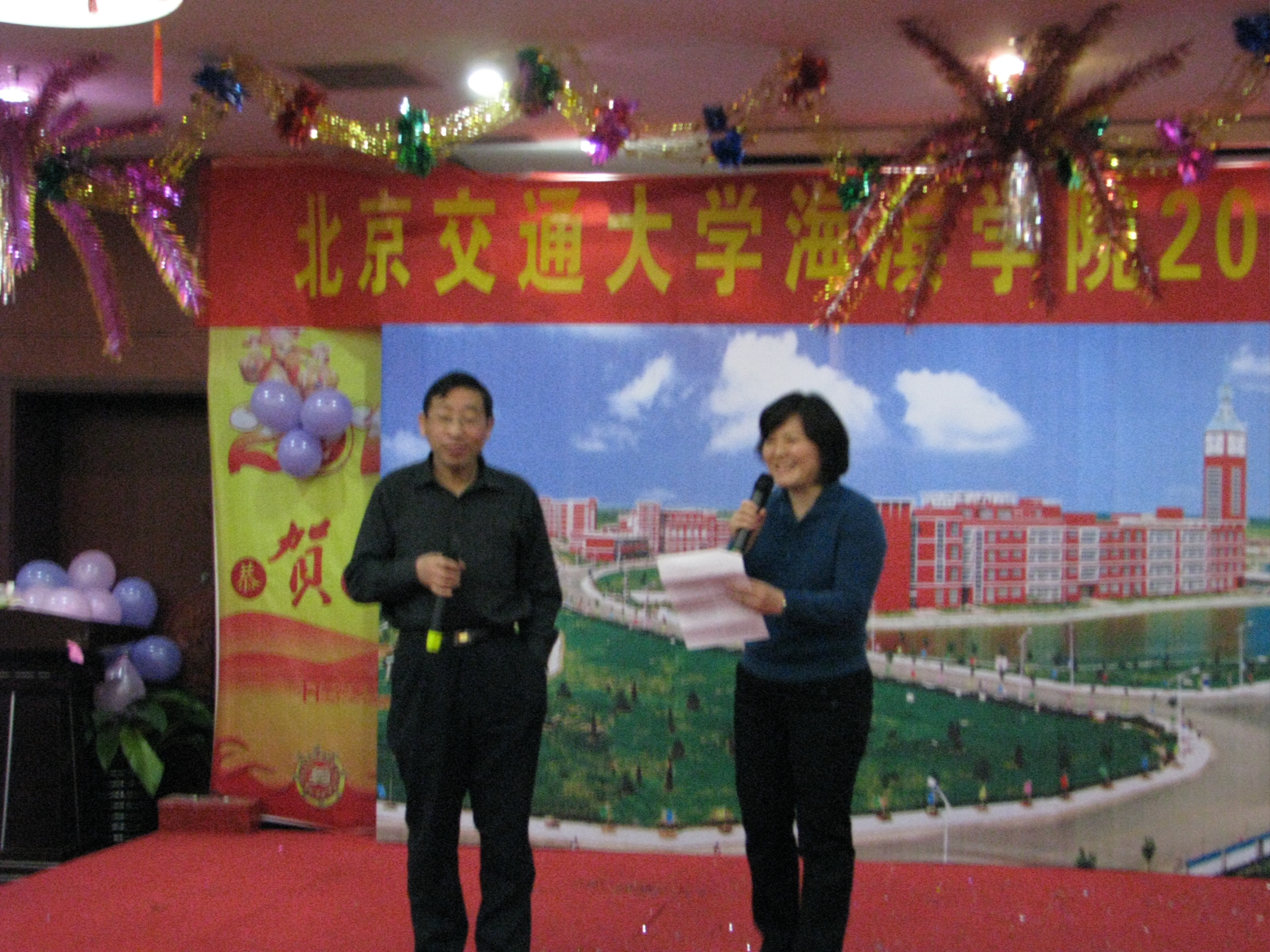我院于12月30日晚在华悦凯旋大酒店南海厅隆重举行2011年新年招待会。黄骅市人民政府市长边老刚,学院董事长薛行远,北京交通大学党委副书记、院长高福廷以及全体院领导和华城科教有限公司有关负责人与全院教职工欢聚一堂、辞旧迎新、共谋发展。