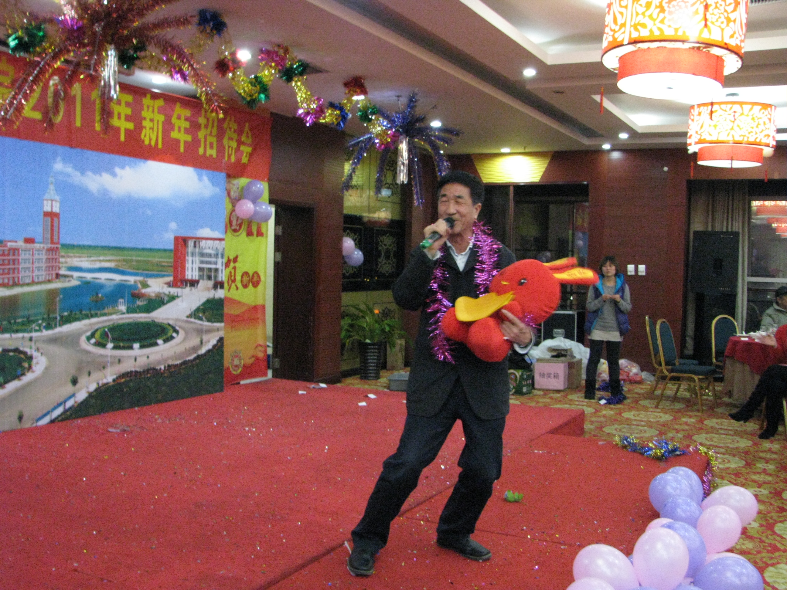招待会场灯光灿烂、花团锦簇;高潮迭起、惊喜不断。学生处为大家献上了一场精心安排的诗朗诵、歌曲舞蹈大反串文艺表演,大家看得很是过瘾;学院办公室精心安排的抽奖环节,一、二、三等奖奖品丰厚,在场人员尖叫声不绝;薛行远董事长特地为教职工准备的110个红包,1千元、1百元连环抽奖,整个会场热闹非凡;边老刚市长、薛行远董事长、高福廷院长、王大勇执行院长、贾怀义副院长等领导和教师代表还即兴为全院教职工表演了精彩的节目,把整个招待会推向一个又一个高潮……
