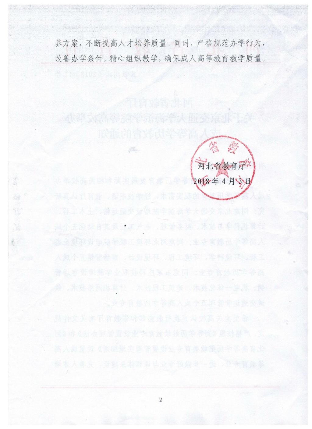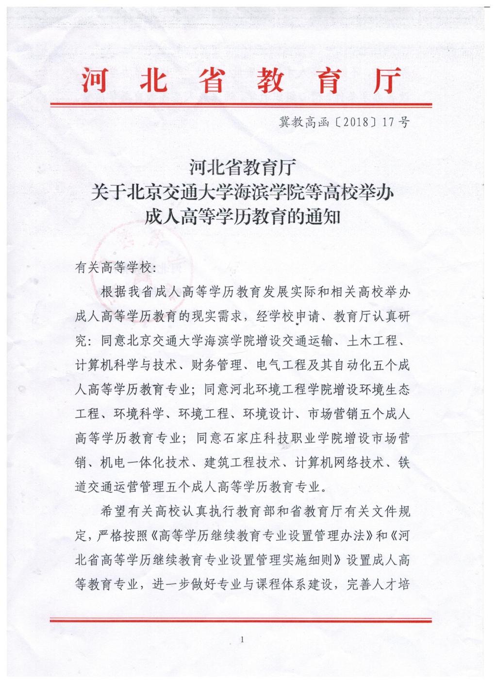 为充分发挥高校服务地方经济社会发展的职能,实现高校与企业之间对人才培养的有效对接,满足各行业对继续教育、终身教育的渴求,根据我省成人高等教育发展实际和现实需求,米乐官网向河北省教育厅申请开展成人高等学历教育。4月3日,河北省教育厅下发《关于北京交通大学海滨学院等高校举办成人高等学历教育的通知》(冀教高函〔2018〕17号),米乐官网成功获批交通运输、土木工程、计算机科学与技术、财务管理、电气工程及其自动化五个成人高等学历教育资质。