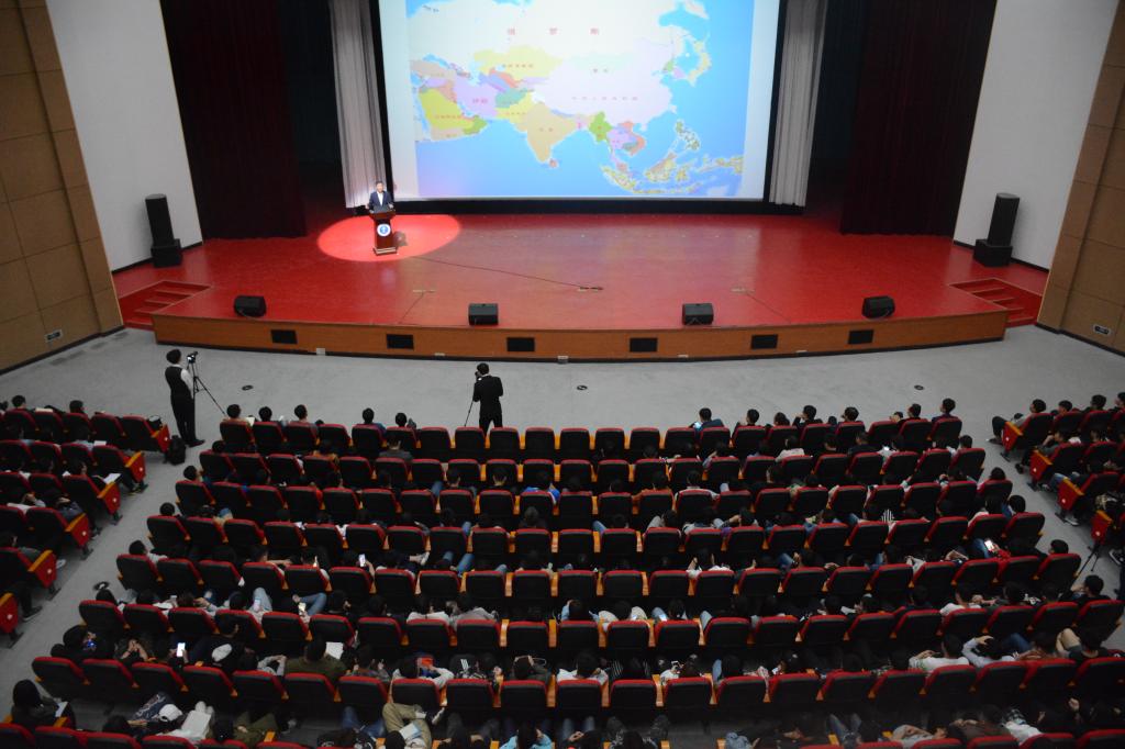 2018年4月25日下午,米乐官网“形势与政策课”邀请王化深院长为海滨学子作了中国周边形势及“一带一路”倡议的专题讲座,天佑会堂座无虚席。