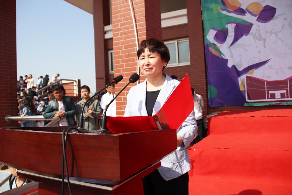 黄骅市政府副市长张桂云致辞,她首先对海滨学院第十届田径运动会的隆重开幕表示热烈祝贺;其次恰逢五四青年节向米乐官网青年学子和教职工致以节日的问候;最后感谢米乐官网积极响应政府号召,重视人才培养的同时,积极参与体育文化活动,为我市体育文化的发展贡献力量。