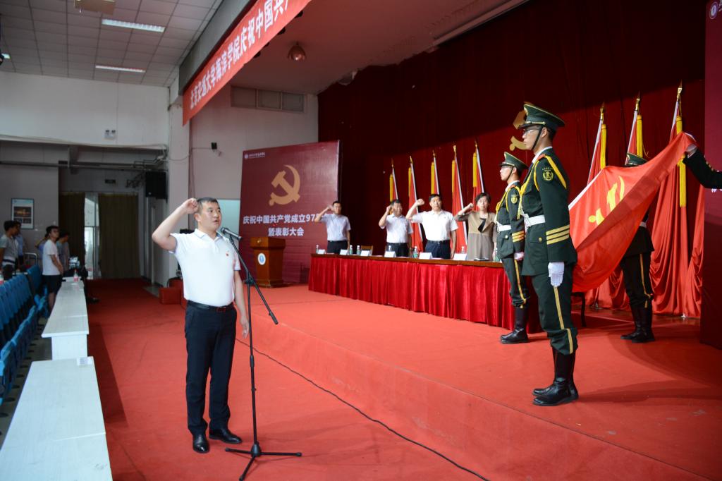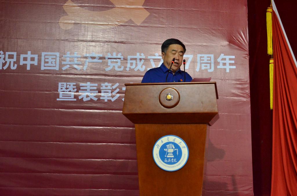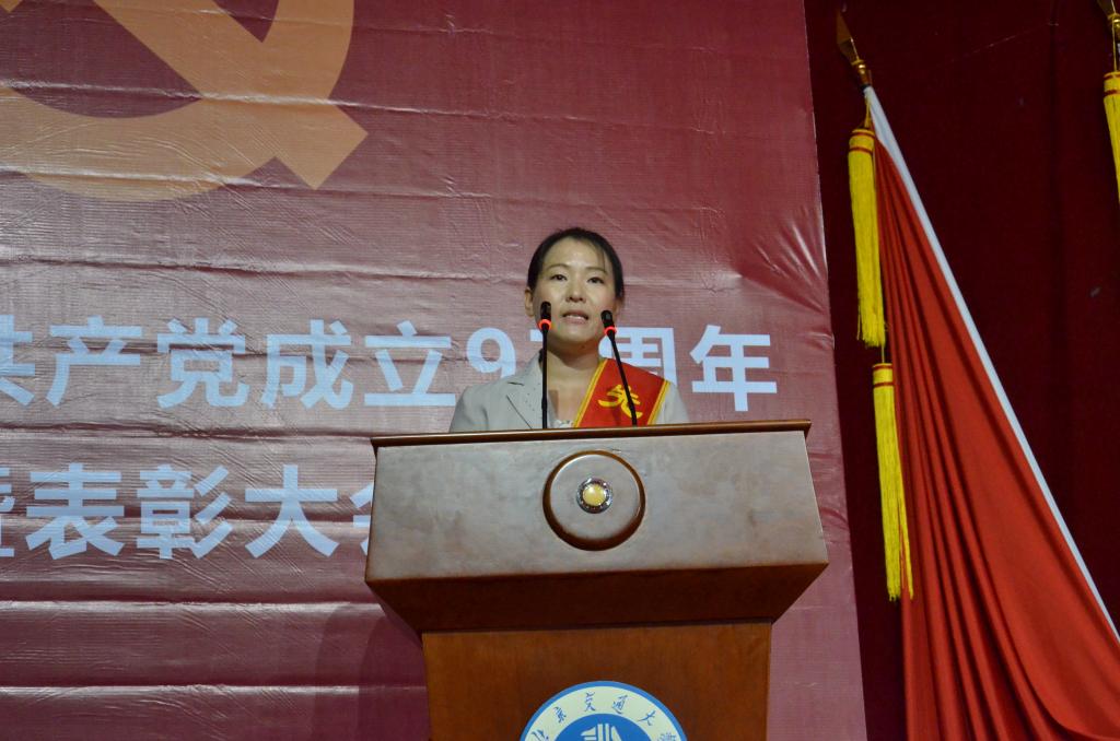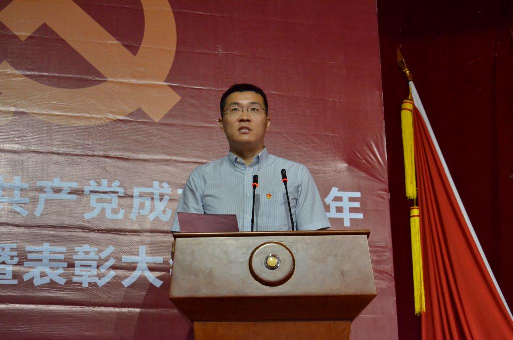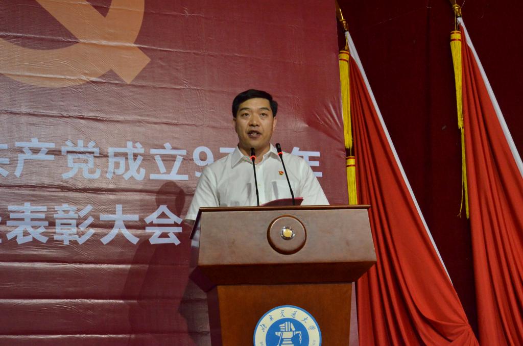 党委书记魏旺强发表讲话,他首先代表学校党委向全校共产党员和师生员工表示衷心的感谢,向受到表彰的先进集体和个人表示热烈的祝贺。