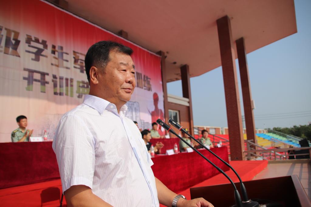 校长王化深致辞。王校长首先代表全校领导和师生向北京交通大学选培办的首长及国防生们表示衷心的感谢,向参训的2017级全体同学以及教官表示诚挚的慰问。他对学生军训提出了“三个需要”,即国家层面的需要,学校层面的需要和学生个人层面的需要,并从这三方面举例生动阐明了军训的目的和意义。以此为基础,王校长向同学们提出了三点要求:一是服从命令、听从指挥、遵守纪律。二是不怕吃苦、不怕受累、不怕流汗。三是思考军训对自己的意义。希望同学们按照要求严格认真训练,成为一个和军队相似的能战斗、能吃苦、很团结的集体。最后,王校长预祝2017级学生军训圆满成功。