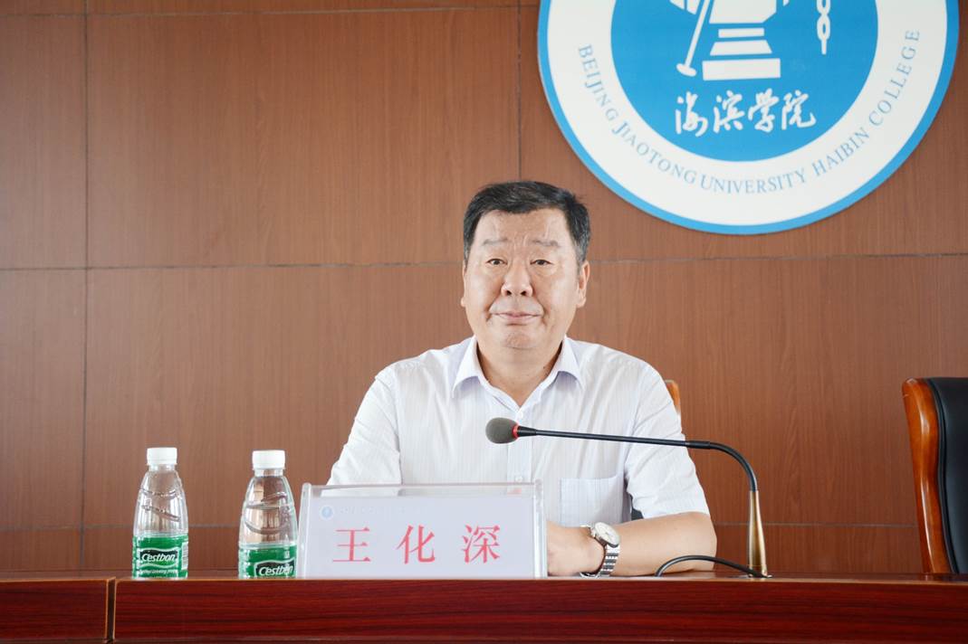 王化深还对全体干部教师提出了三点希望:一是希望全体干部教师要将本职工作作为一份事业来经营,要充分提高综合素养和能力,以严谨的治学态度、广博的专业知识促进教学水平和科研水平的提高;二是希望全体干部教师注重个人德行修养,增强政治坚定性,规范课堂纪律性,要做到学为人师,行为世范;三是希望一线工作人员能够树立服务意识,以服务求生存,以服务促发展,努力为基层、为教师、为学生提供有力的后勤保障。