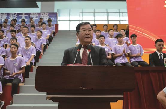 祥兴集团副总裁、海滨学院副院长薛君南致辞。他希望2018级同学们在大学期间能够珍惜时光,砥砺意志,增长才干,在这里追寻大师的脚步,探寻知识的海洋,铸造坚毅的品质,培养创新的思维,成为一名真真正正的大学生。