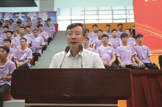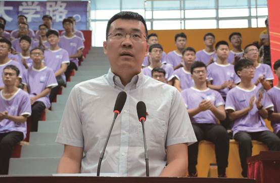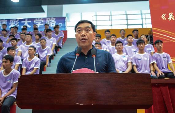 黄骅市委常委、市人民政府副市长靖瑞锋致辞。他首先欢迎同学们来到黄骅这座多元热情的城市,并希望同学们时刻牢记时代赋予大家的崇高使命,不断提升自身能力,努力练就扎实本领,脚踏实地,勤奋拼搏,真正成为一名德才兼备的高素质人才。
