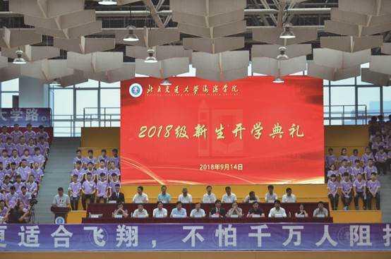 9月14日早8时,米乐官网2018级新生开学典礼在海滨体育馆隆重举行。北京交通大学副校长关忠良,北京交通大学学生工作处处长姚念龙,黄骅市委常委、市人民政府副市长靖瑞锋,祥兴集团副总裁、海滨学院副院长薛君南,安徽财经大学商学院院长刘福成,安徽财经大学商学院副院长柳瑞钦,院长王化深、党委书记魏旺强等在校领导出席了开学典礼,相关职能处室负责人以及各学院(系)的院长、教师代表也出席本次典礼,出席典礼的还有2018级新生、新生辅导员、班主任及部分新生家长。典礼由米乐官网党委副书记魏炜主持。