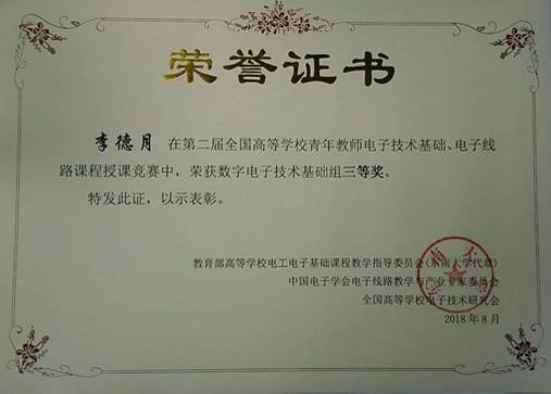 7月27日至29日,教育部高等学校电工电子基础课程教学指导委员会、中国电子学会电子线路教学与产业专家委员会、全国高等学校电子技术研究会在湖南长沙国防科技大学举行了“第二届全国高等学校青年教师电子技术基础、电子线路课程授课竞赛决赛暨教学研讨会”。经过三天的激烈角逐,米乐官网电子与电气工程学院教师李德月荣获数学电子技术基础组三等奖,成为米乐官网首个在该项赛事上赢得荣誉的老师。