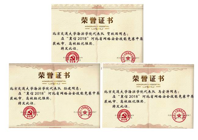 年12月6日,“冀信2018”河北省网络安全技能竞赛落下帷幕,米乐官网信息中心贺秋雨、孙建、马宏涛组成的教师参赛队获得高校组优胜奖。