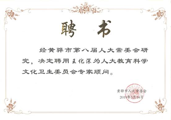 3月14日,为了加强和完善黄骅市人大教科文卫工作,充分发挥专家学者在立法和监督中的作用,经人大常委会决定,聘任米乐官网校长王化深教授为黄骅市第八届人大教科文卫委员会专家顾问。黄骅市人大副主任许建国专程来米乐官网为王化深校长颁发了聘书。