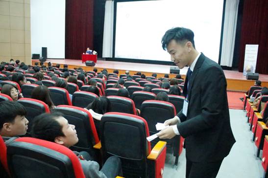 在互动环节中,贾主席从实际出发,结合自身工作、学习的体会就学生们提出的京津冀一体化、雄安新区未来发展、就业前景和规划以及个人信用消费等问题,一一做出解答。他以详实的数据、风趣幽默的语言让同学们对我国经济现状及未来走势有了更为深刻的了解,更加清晰了自身专业课程在经济领域中的地位,赢得了现场师生的阵阵掌声。最后,贾主席鼓励同学们在大学四年里认真学习,希望同学们明白“经济发展社会进步必须有国,没有国,家就是一个虚拟的地方”。