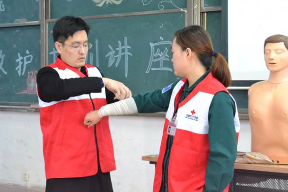 培训分为理论教学和实践操作两个部分。讲座伊始,李华清医生通过播放视频向在场师生展示了在日常生活中难免遇到的意外伤害事故,并多次强调,在遭遇了意外伤害事故时具备专业的援助机构求救方法与掌握急救知识技能的重要性。