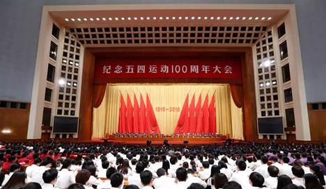 大会上,习近平总书记缅怀了五四先驱崇高的爱国情怀和革命精神,总结了党和人民探索实现民族复兴道路的宝贵经验。习近平总书记指出,五四运动爆发于民族危难之际,是一场以先进青年知识分子为先锋、广大人民群众参加的彻底反帝反封建的伟大爱国革命运动,是一场中国人民为拯救民族危亡、捍卫民族尊严、凝聚民族力量而掀起的伟大社会革命运动,是一场传播新思想新文化新知识的伟大思想启蒙运动和新文化运动,以磅礴之力鼓动了中国人民和中华民族实现民族复兴的志向和信心。