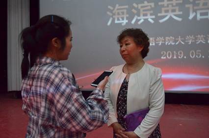 本次活动的组织者武琦老师讲到,晚会的顺利进行离不开所有为此活动提供过帮助的学生及老师,特此感谢大学英语教研室及历任的主办人和所有参与此次活动的人。这个活动让武琦老师感触最深的是:“当你觉得工作的时候很辛苦,就想想那些因为你的工作而获益的人,你就会感到很值得,虽然这次活动经过多方协调,但是我们幕后老师及同学只要想到所有的参赛者对此次比赛的重视程度,就觉得所有的付出都是有意义并且值得的。”她希望通过这个活动,有越来越多的学生坚持并爱上学习英语。